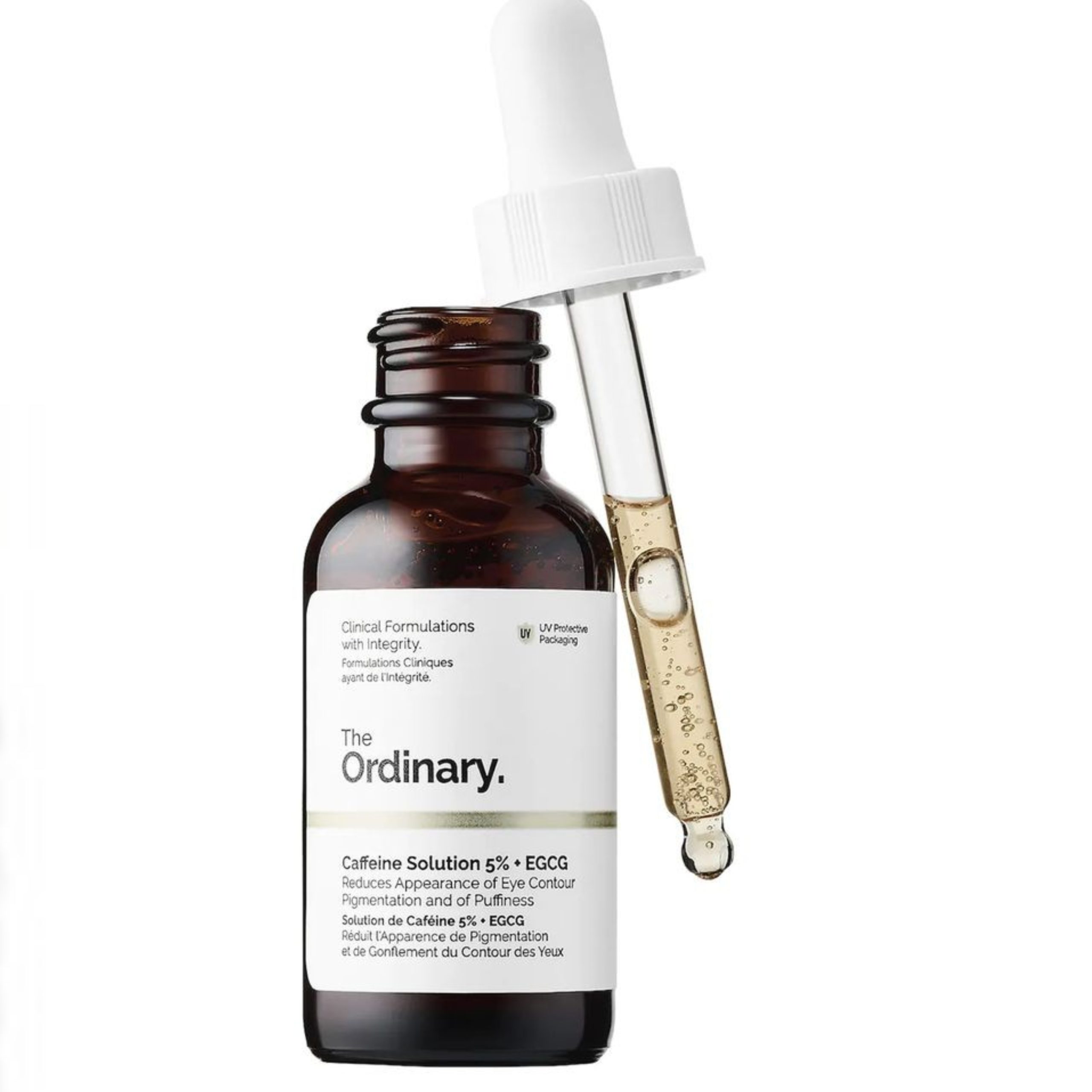 محصول The Ordinary Caffeine Solution 5% برای کاهش تیرگی و پف زیر چشم طراحی شده است